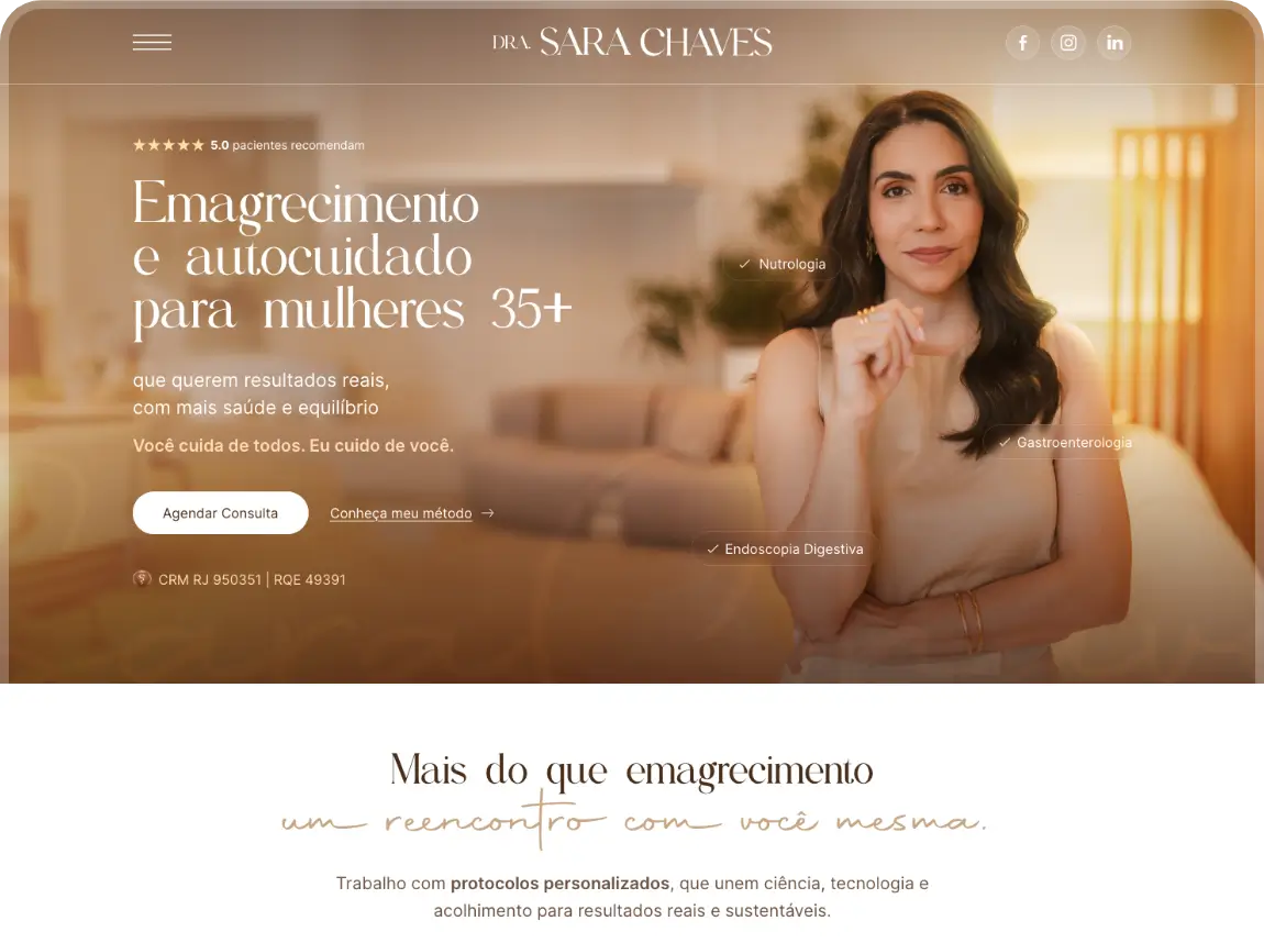 Aqui estratégia e estética se encontram. Desenhamos uma experiência intuitiva, elegante e funcional, pensada para transmitir profissionalismo, gerar confiança e valorizar o que você oferece.